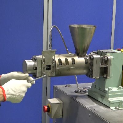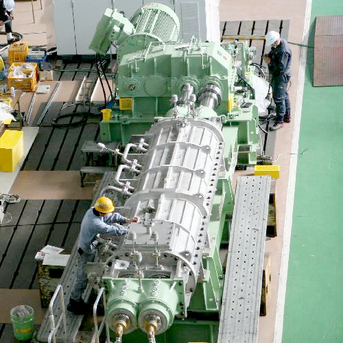 二軸連続式混練機「KRCニーダ」は次の機械特性により、相変化する原料も安定して処理できます。 また、大型機種を用いて十分に滞留時間を確保し、反応を完結させることができます。
